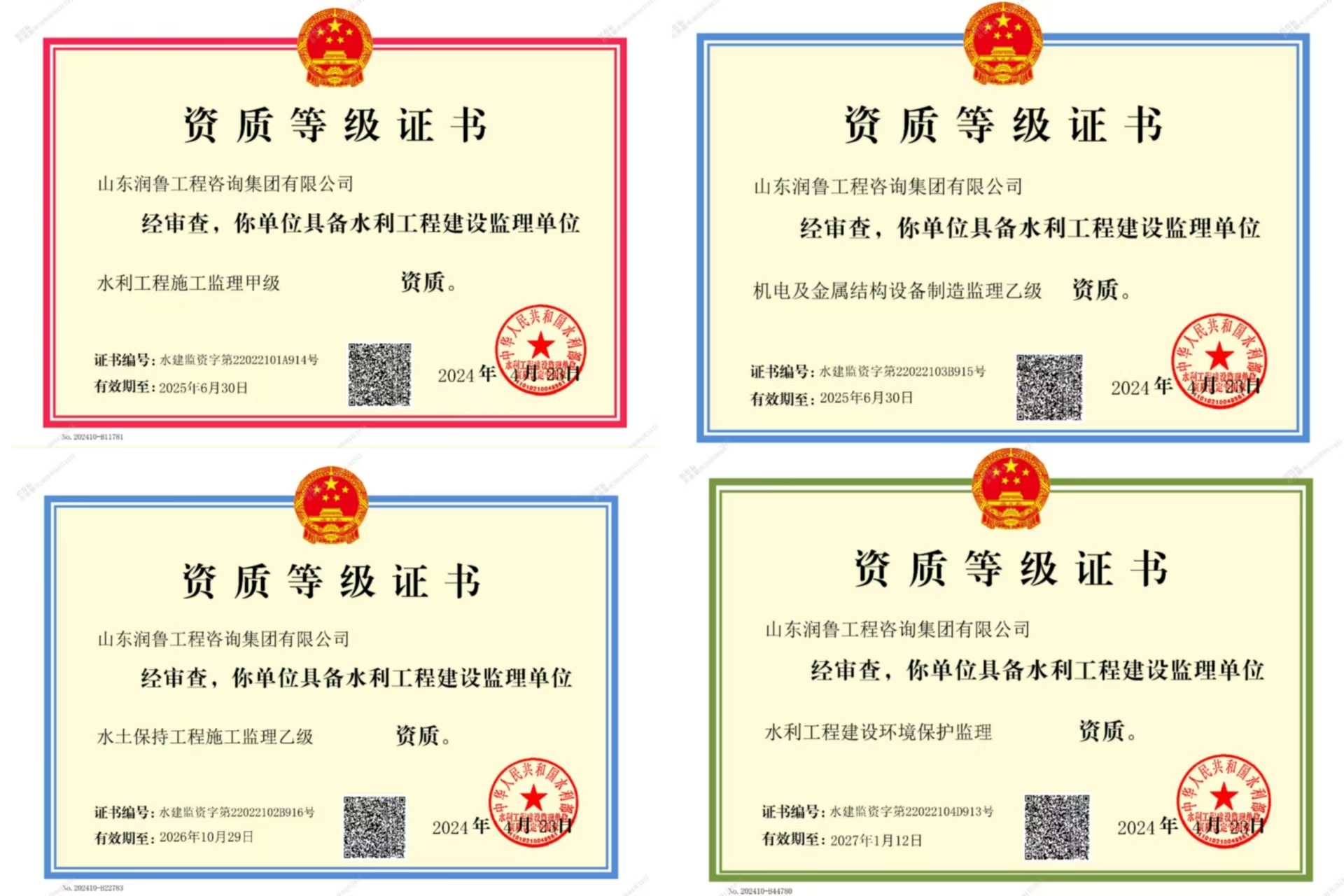 江南平台官网中国有限公司(以下简称“山东润鲁集团”)成立于2014年9月,省管国有独资企业,由山东省环保发展集团有限公司一级平台公司山东省环保发展集团科创有限公司全资控股,拥有水利工程施工甲级、水土保持工程施工乙级、机电及金属结构设备制造乙级、水利工程建设环境保护不定级、山东省土地乙级等监理资质,为中国水利工程监理类AAA级信用等级企业,高新技术企业、科技型中小企业、创新型中小企业,山东省“专精特新”中小企业、济南市“专精特新”中小企业,济南市瞪羚企业,中国水利工程协会、中国水利企业协会、山东省建设项目环境监理协会会员单位,通过了质量、环境、职业健康安全管理三体系认证。